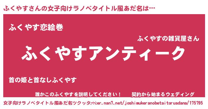 | 胡散臭い通販商品みたいなあだ名 | 『テレビで話題の高麗人参…その名も「ふくやす」』 |