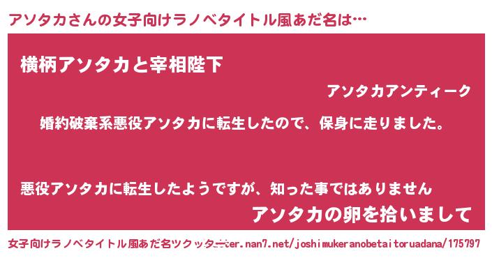 | 男性向けラノベタイトル風あだ名 | 『アソタカスレイヤー』 |