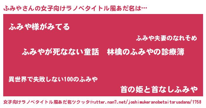 | 男性向けラノベタイトル風あだ名 | 『魔弾の王とふみや』 |