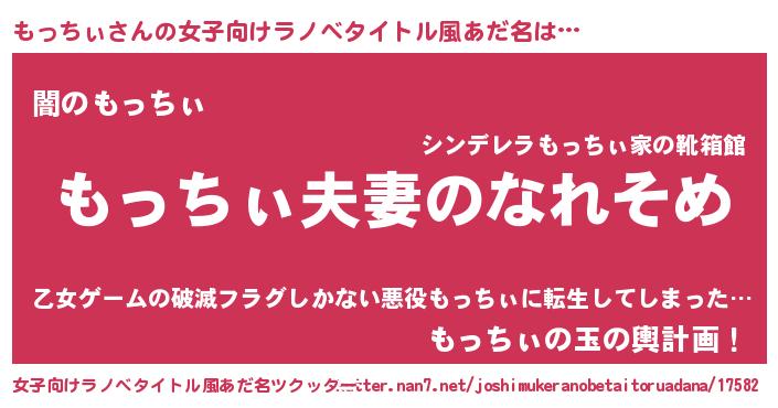 | 胡散臭い通販商品みたいなあだ名 | 『100人中100人が認めた隕石のかけら…その名も「もっちぃ」』 |