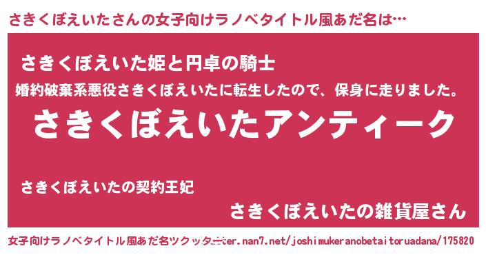 | 意味不明あだ名 | 『自称さきくぼえいた』 |