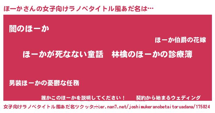 | 胡散臭い通販商品みたいなあだ名 | 『ハリウッド女優が絶賛した100年もののヴィンテージワイン…その名も「ほーか」』 |