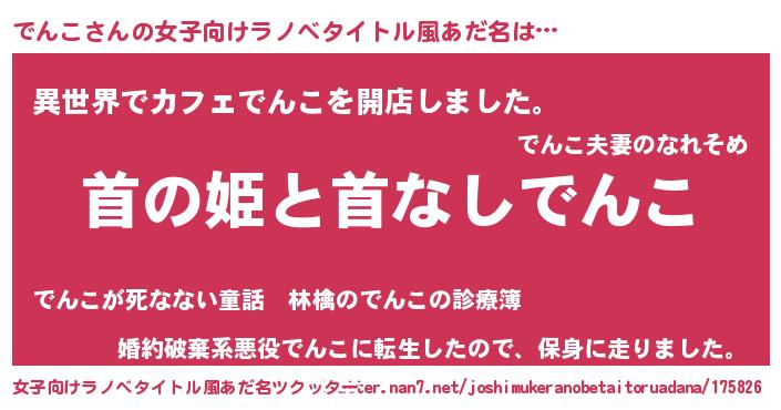 | 胡散臭い通販商品みたいなあだ名 | 『来世でも幸せになれる健康食品…その名も「でんこ」』 |