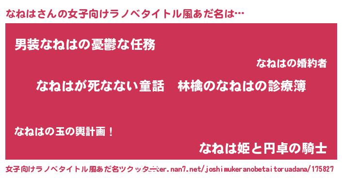 | 胡散臭い通販商品みたいなあだ名 | 『ハリウッド女優が絶賛した世界で10本だけ現存している希少なブランデー…その名も「なねは」』 |