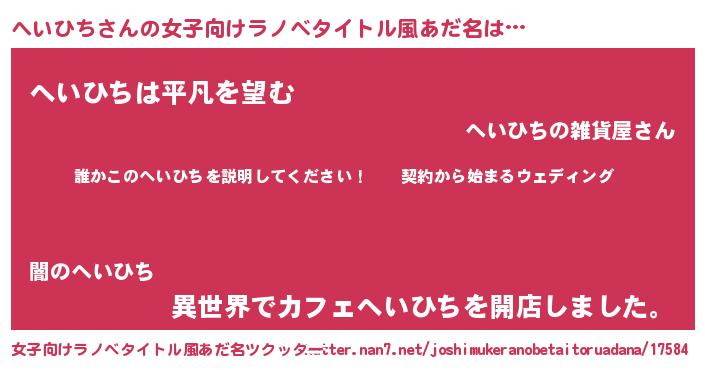 | 胡散臭い通販商品みたいなあだ名 | 『億万長者になれる水晶球…その名も「へいひち」』 |