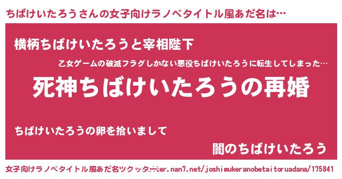 | ヘコむあだ名 | 『ちばお』『ちばけいたろう(爆)』 |