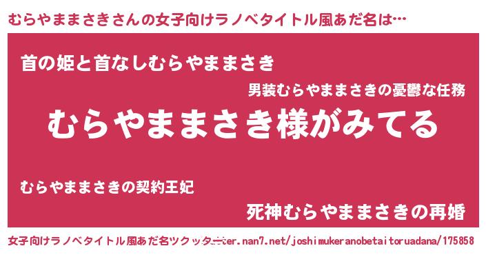 | ヘコむあだ名 | 『むらを』『むらやままさき(笑)』 |