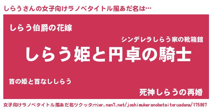 | 男性向けラノベタイトル風あだ名 | 『シラウアートオンライン』 |