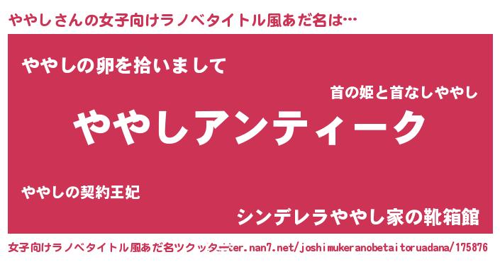 | 男性向けラノベタイトル風あだ名 | 『魔法科高校のややし』 |