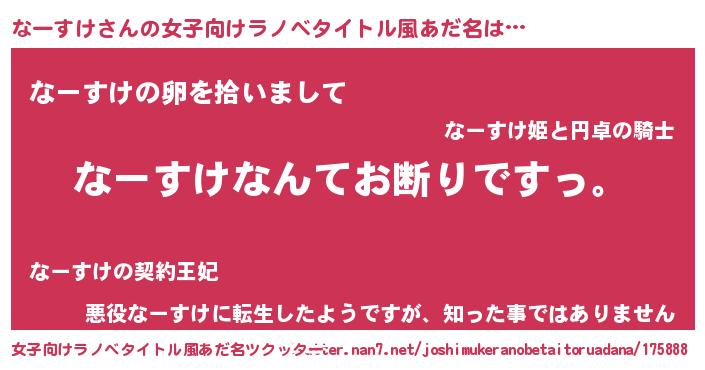 | 男性向けラノベタイトル風あだ名 | 『魔法科高校のなーすけ』 |