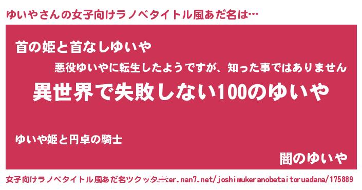 | ヘコむあだ名 | 『ゆいや(笑)』『ゆいにゅー』 |