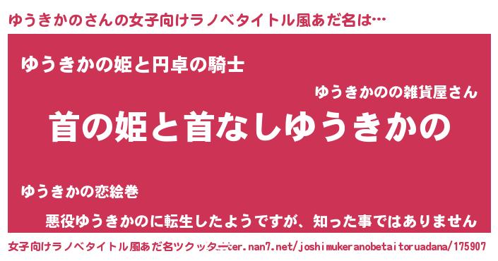 | 胡散臭い通販商品みたいなあだ名 | 『モテモテ間違いなし水晶球…その名も「ゆうきかの」』 |