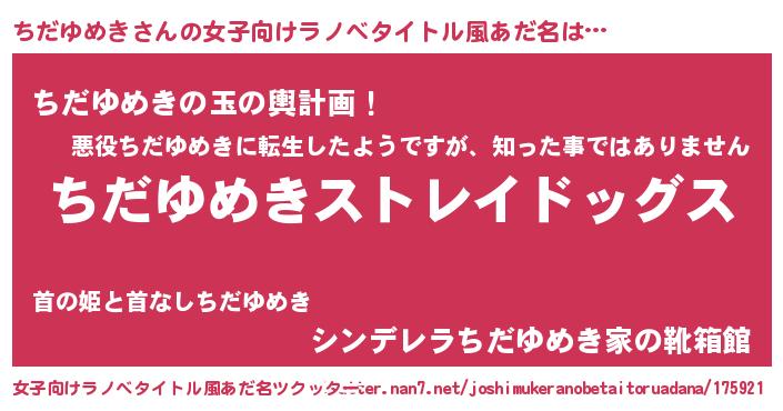 | 男性向けラノベタイトル風あだ名 | 『Re:ちだゆめきから始める異世界生活』 |