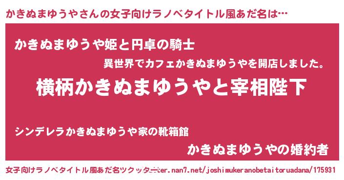 | 男性向けラノベタイトル風あだ名 | 『かきぬまゆうやに滅ぼされるだけの簡単なお仕事です』 |