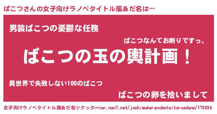 | 意味不明あだ名 | 『もやし科ばこつ属』『自称ばこつ』 |