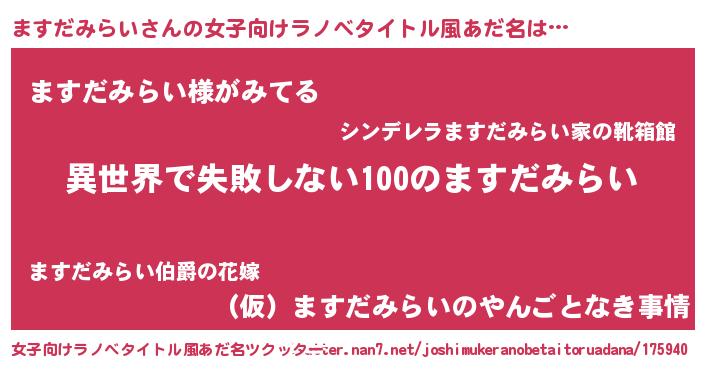 | 男性向けラノベタイトル風あだ名 | 『ますだみらいという概念が存在しない退屈な世界 』 |