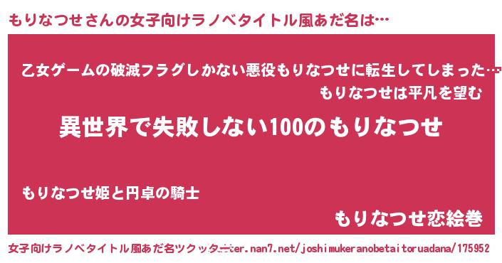 | 男性向けラノベタイトル風あだ名 | 『もりなつせという概念が存在しない退屈な世界 』 |