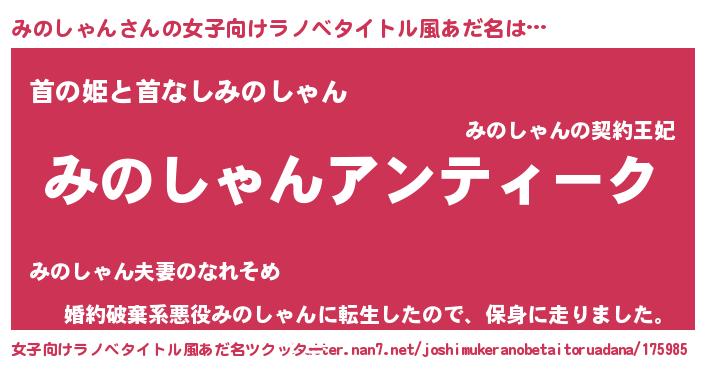 | 意味不明あだ名 | 『自称みのしゃん』『永久保存みのしゃん』 |