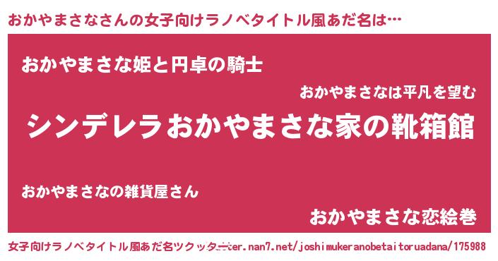 | 胡散臭い通販商品みたいなあだ名 | 『必ず成功する霊験あらたかなお札…その名も「おかやまさな」』 |