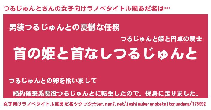 | 男性向けラノベタイトル風あだ名 | 『はたらくつるじゅんとさま!』 |