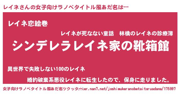 | ヘコむあだ名 | 『レイネ(小並感)』『レイにゅー』 |