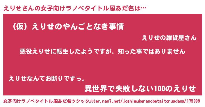 | 男性向けラノベタイトル風あだ名 | 『この素晴らしい世界にえりせを!』 |