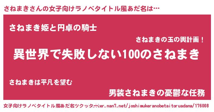 | 意味不明あだ名 | 『永久保存さねまき』『ペロリンさねまき』 |