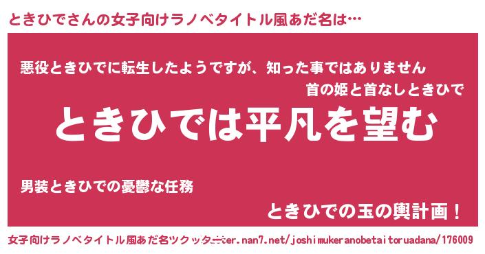 | 男性向けラノベタイトル風あだ名 | 『ダンジョンにときひでを求めるのは間違っているだろうか』 |