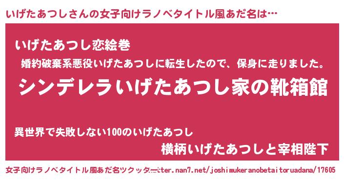 | ヘコむあだ名 | 『いげたあつし(笑)』『いげにー』 |