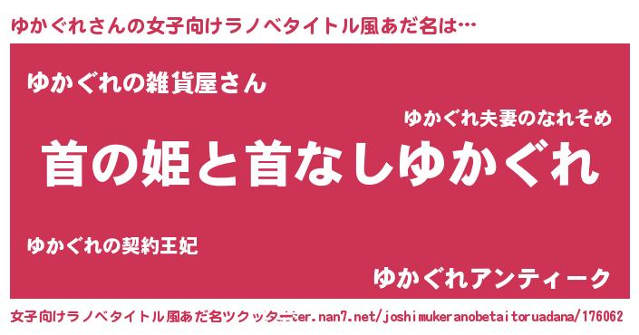 | 胡散臭い通販商品みたいなあだ名 | 『幸せが訪れる高級そうな壺…その名も「ゆかぐれ」』 |
