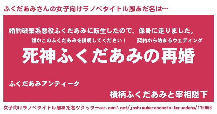 | 男性向けラノベタイトル風あだ名 | 『ノーゲーム・ノーフクダアミ』 |