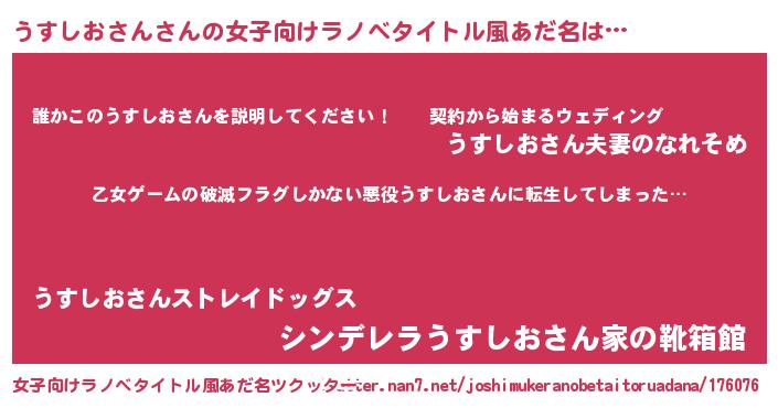 | ヒーロー風カッコイイあだ名 | 『仮面ウスダー』『スーパーウスシオサン』 |