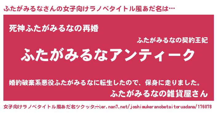 | 意味不明あだ名 | 『自称ふたがみるな』 |