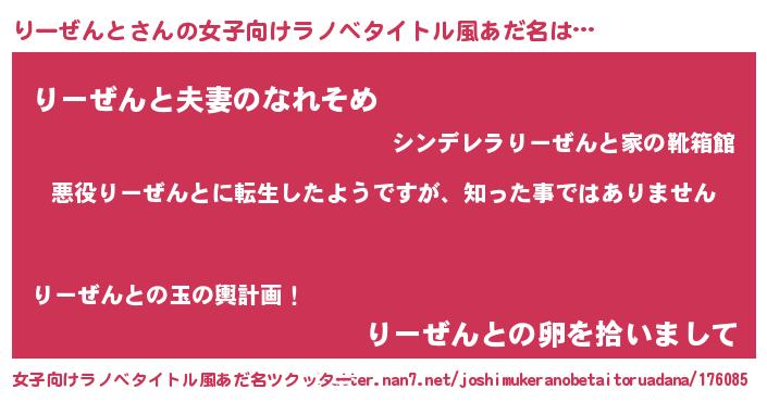 | 男性向けラノベタイトル風あだ名 | 『この素晴らしい世界にりーぜんとを!』 |