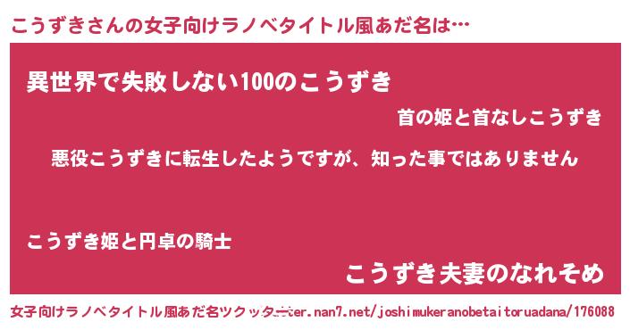 | 胡散臭い通販商品みたいなあだ名 | 『あなたにだけ特別に提供する限定10本のレアな日本酒…その名も「こうずき」』 |