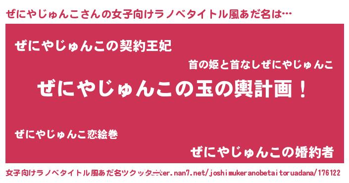 | 男性向けラノベタイトル風あだ名 | 『転生したらぜにやじゅんこだった件』 |