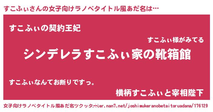 | 意味不明あだ名 | 『永久保存すこふぃ』『自称すこふぃ』 |