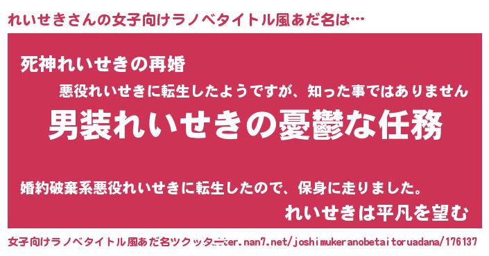 | ヘコむあだ名 | 『れいぷりん』『れいせき(爆)』 |