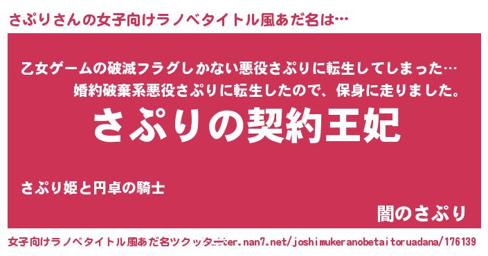 | 意味不明あだ名 | 『永久保存さぷり』『自称さぷり』 |
