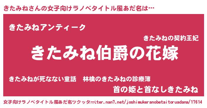 | 男性向けラノベタイトル風あだ名 | 『やはりきたみねの青春ラブコメはまちがっている 』 |