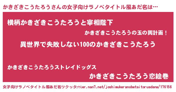 | 男性向けラノベタイトル風あだ名 | 『かきざきこうたろうという概念が存在しない退屈な世界 』 |
