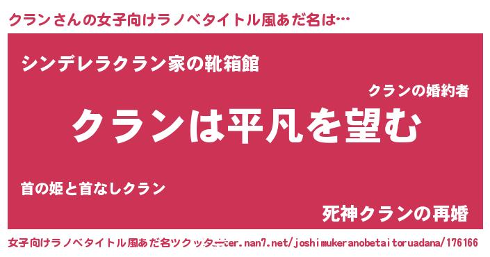 | 胡散臭い通販商品みたいなあだ名 | 『信頼と実績のネックレス…その名も「クラン」』 |