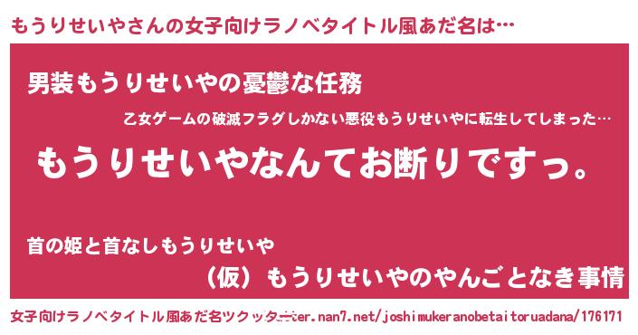 | 男性向けラノベタイトル風あだ名 | 『魔法科高校のもうりせいや』 |