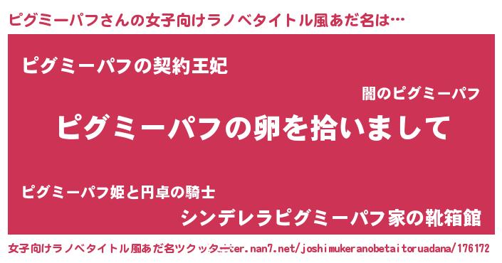 | 男性向けラノベタイトル風あだ名 | 『ダンジョンにピグミーパフを求めるのは間違っているだろうか』 |