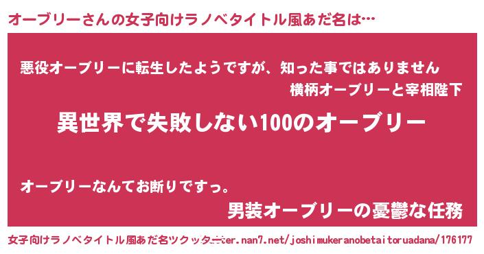 | 胡散臭い通販商品みたいなあだ名 | 『絶対に幸福をもたらす水素水…その名も「オーブリー」』 |