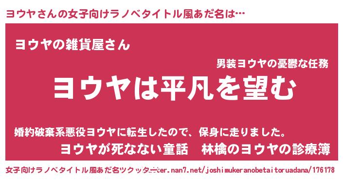 | 男性向けラノベタイトル風あだ名 | 『ダンジョンにヨウヤを求めるのは間違っているだろうか』 |