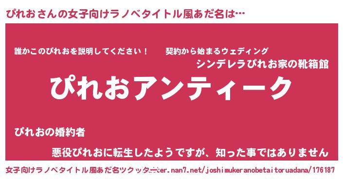 | 男性向けラノベタイトル風あだ名 | 『魔法科高校のぴれお』 |