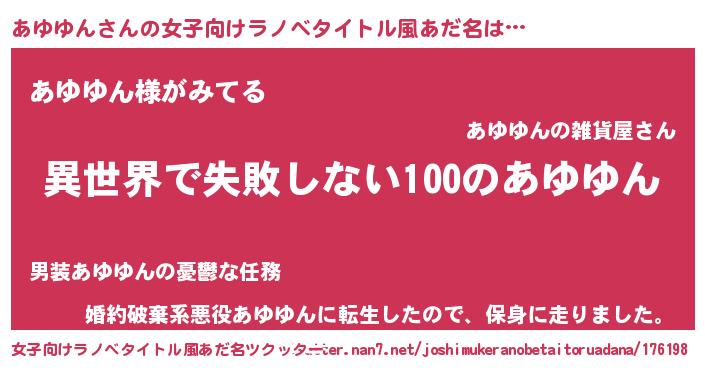 | ヒーロー風カッコイイあだ名 | 『ネオアユユン』『幻影騎士アユ』 |