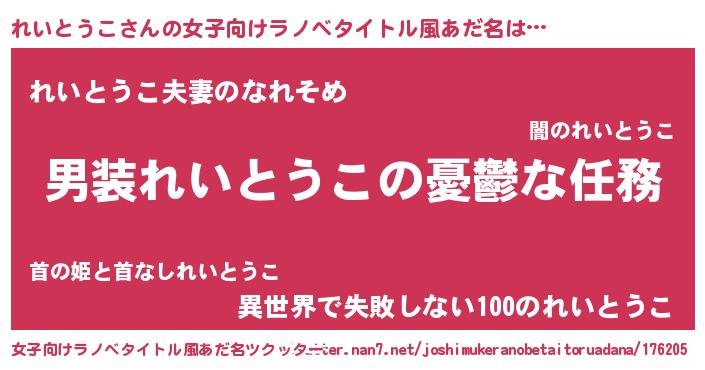 | 男性向けラノベタイトル風あだ名 | 『うちのれいとうこが世界を掌握している!』 |