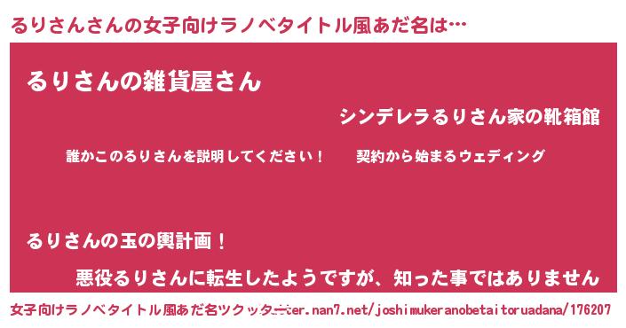 | ファンタジー風あだ名 | 『ルリフェル』『エターナルルリサンー』 |